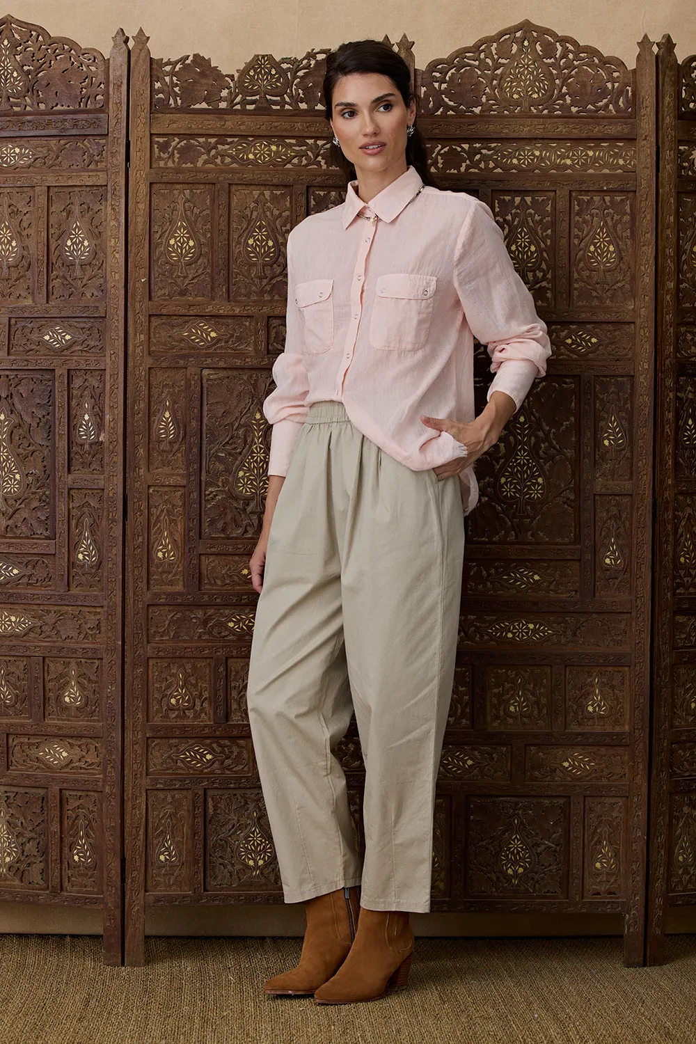 La Camisa Sukri es una prenda de manga larga confeccionada en un textil suave y ligero que aporta comodidad y estilo. Presenta bolsillos frontales que suman un detalle funcional y moderno.