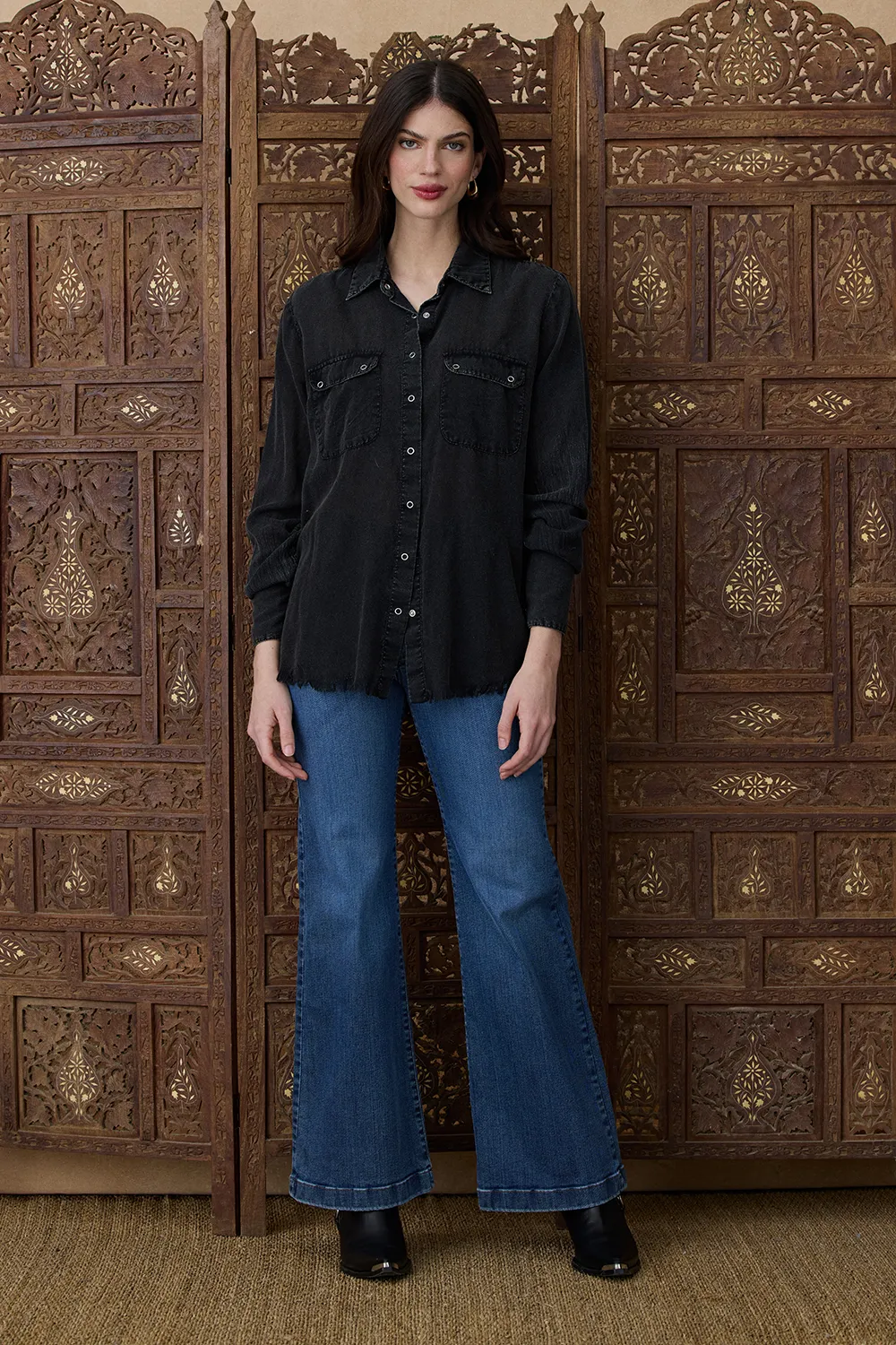 La Camisa Sukri es una prenda de manga larga confeccionada en un textil suave y ligero que aporta comodidad y estilo. Presenta bolsillos frontales que suman un detalle funcional y moderno.