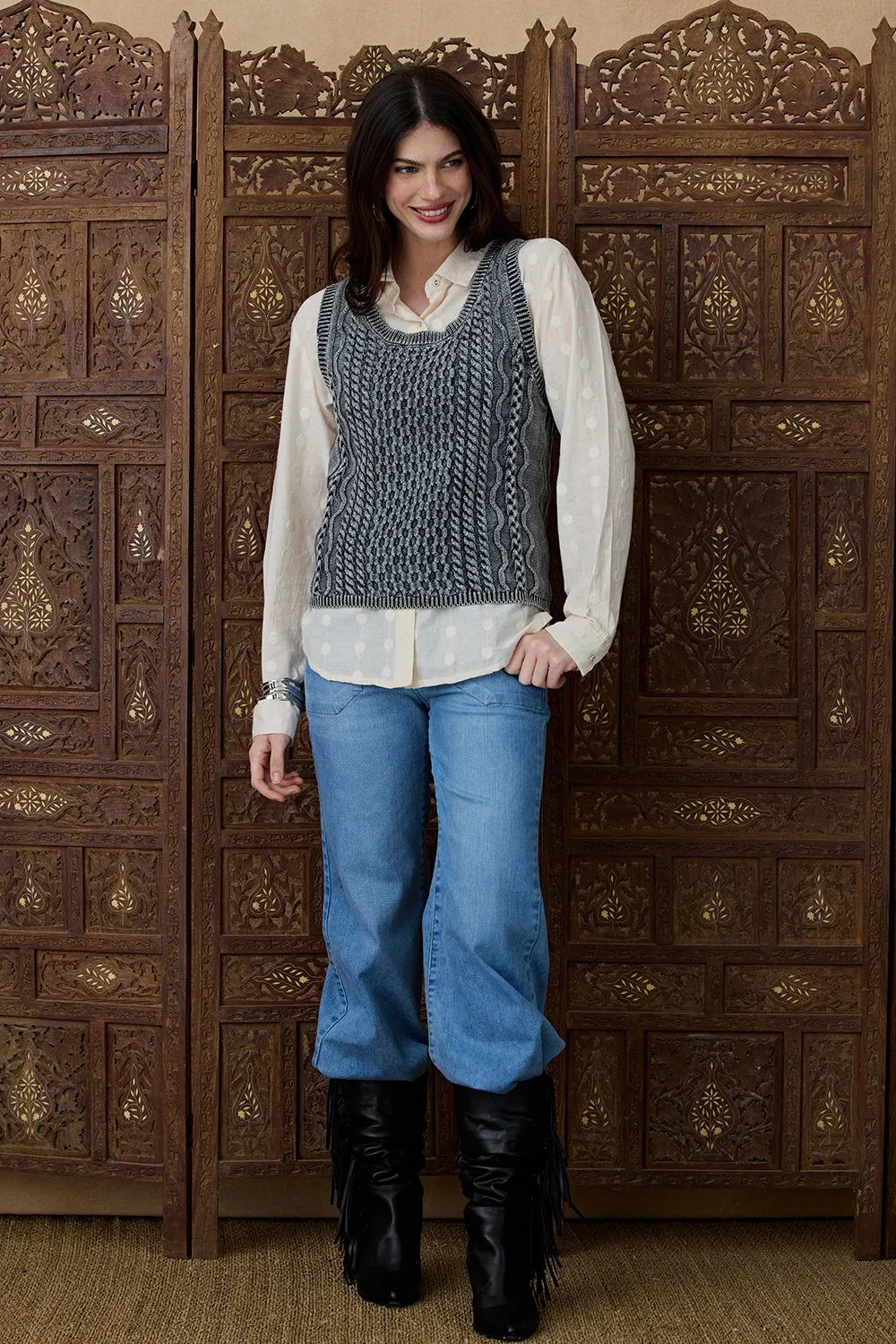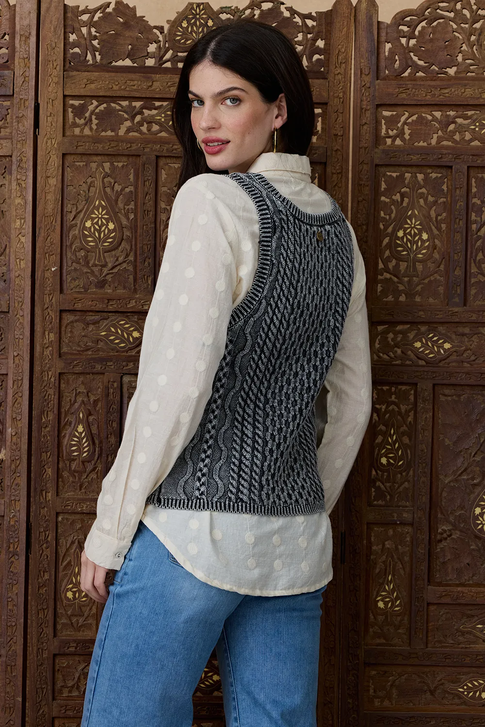 Chaleco tejido con efecto stonewash que aporta un look relajado y moderno.