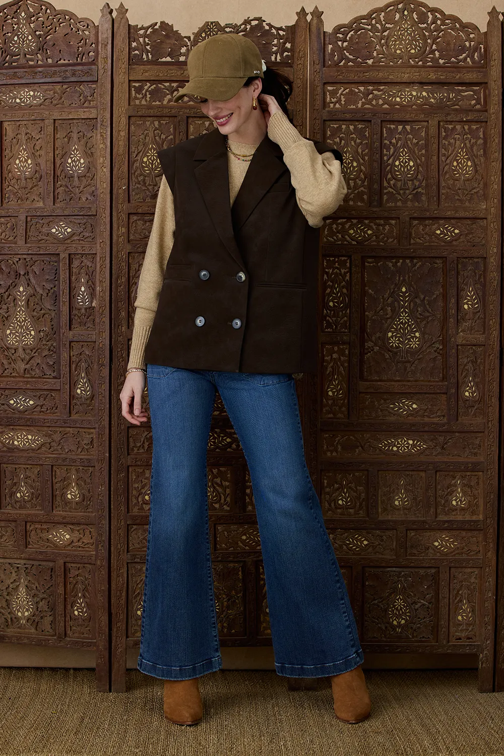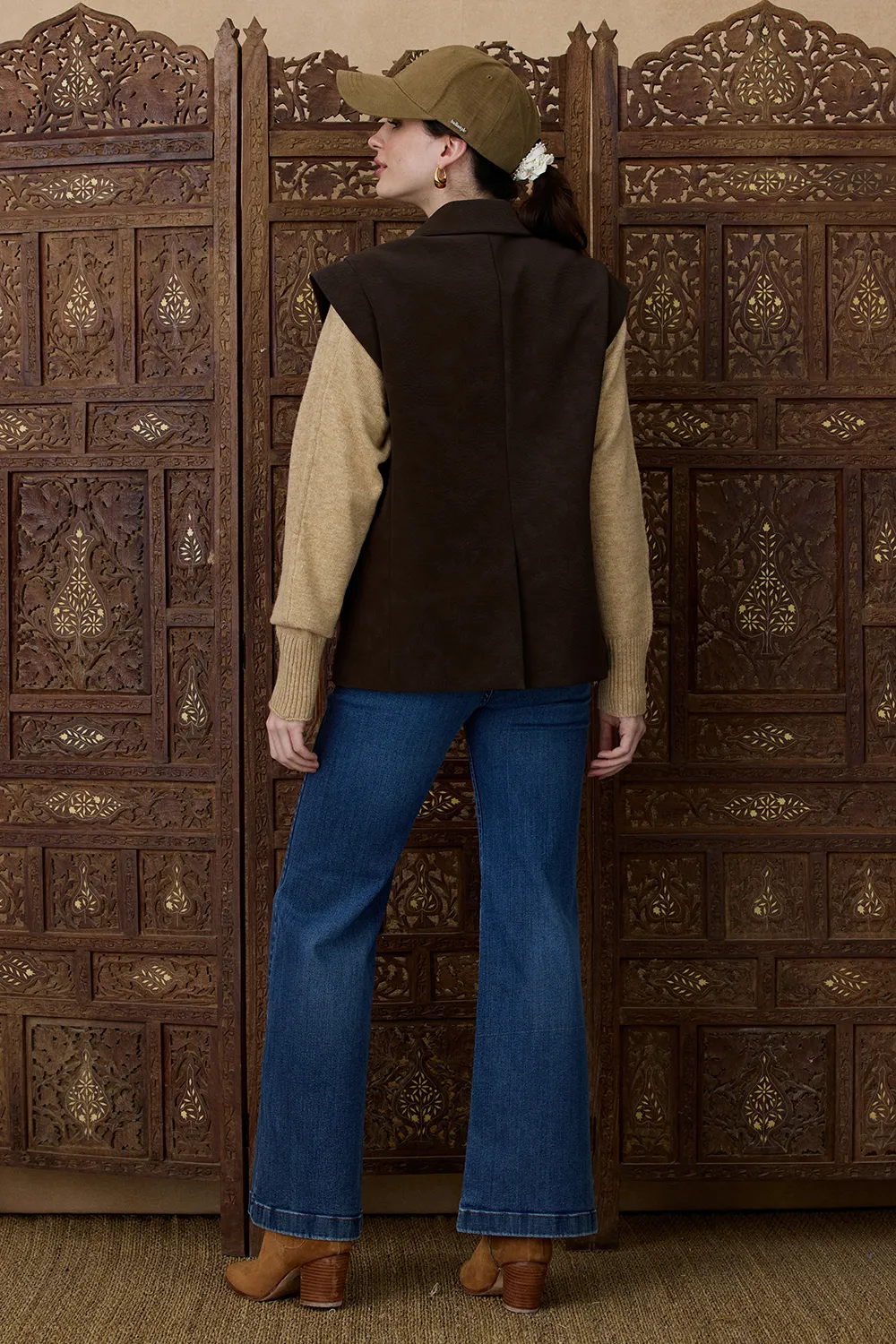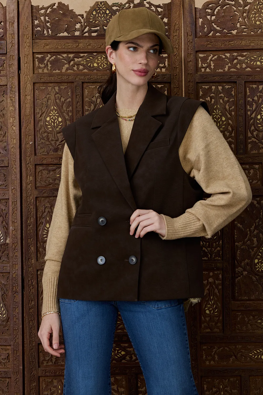 Chaleco de PU con diseño cruzado que aporta un look moderno y sofisticado.