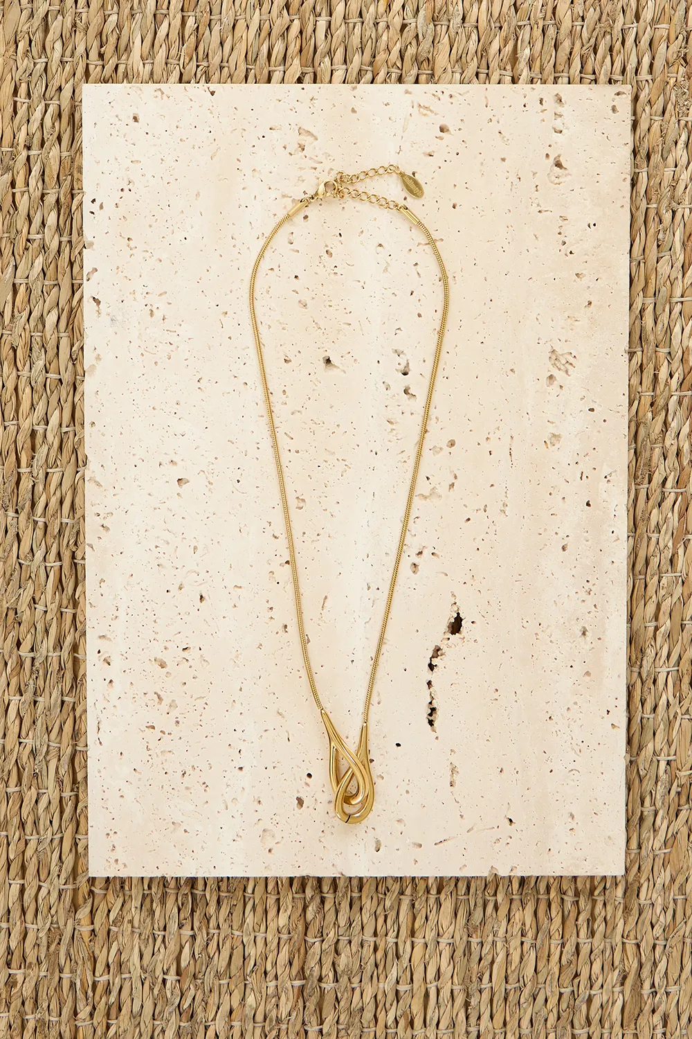 El Collar Tasnif está confeccionado en acero quirúrgico y presenta eslabones anudados que aportan un diseño moderno y sofisticado.