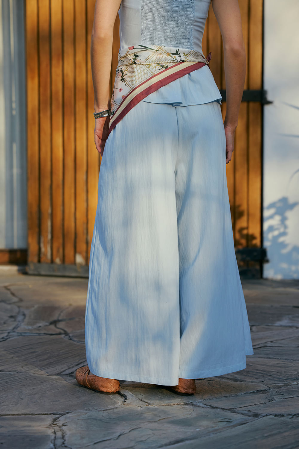 Pantalón estilo palazzo, de corte amplio y recto. Acceso a la prenda por medio de elástico. Hace conjunto con la BLUSA SANK.