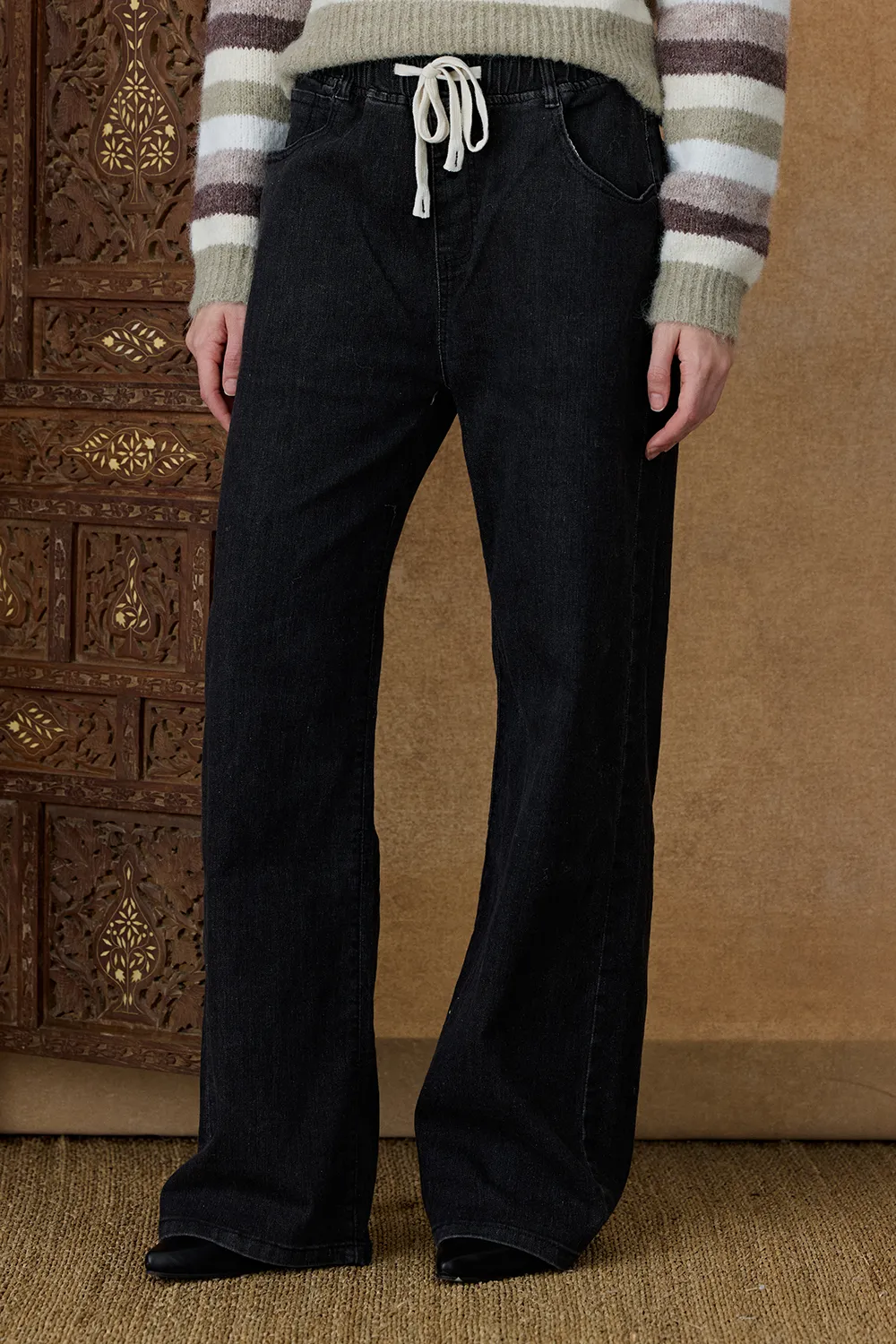Pantalón Olivo en denim de algodón suave, de calce holgado y cintura con elástico para mayor comodidad. Con bolsillos delanteros y traseros. Combina con Camisa Alacati o Remera Jupulo.