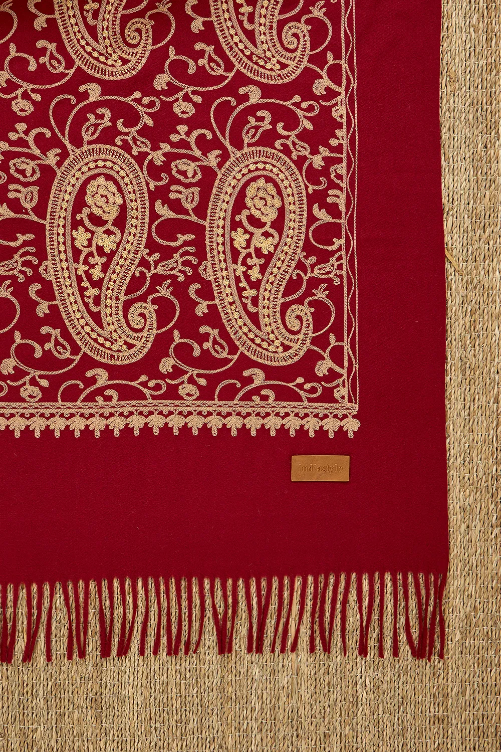 La Pashmina Yasmin presenta delicados bordados en dorado que aportan un estilo elegante y sofisticado.