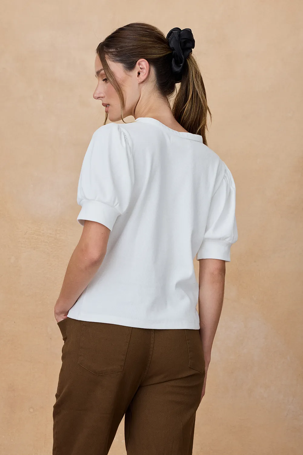La Remera Radal está confeccionada en morley suave y presenta mangas princesa. Su cartera de botones en el escote realza el diseño.