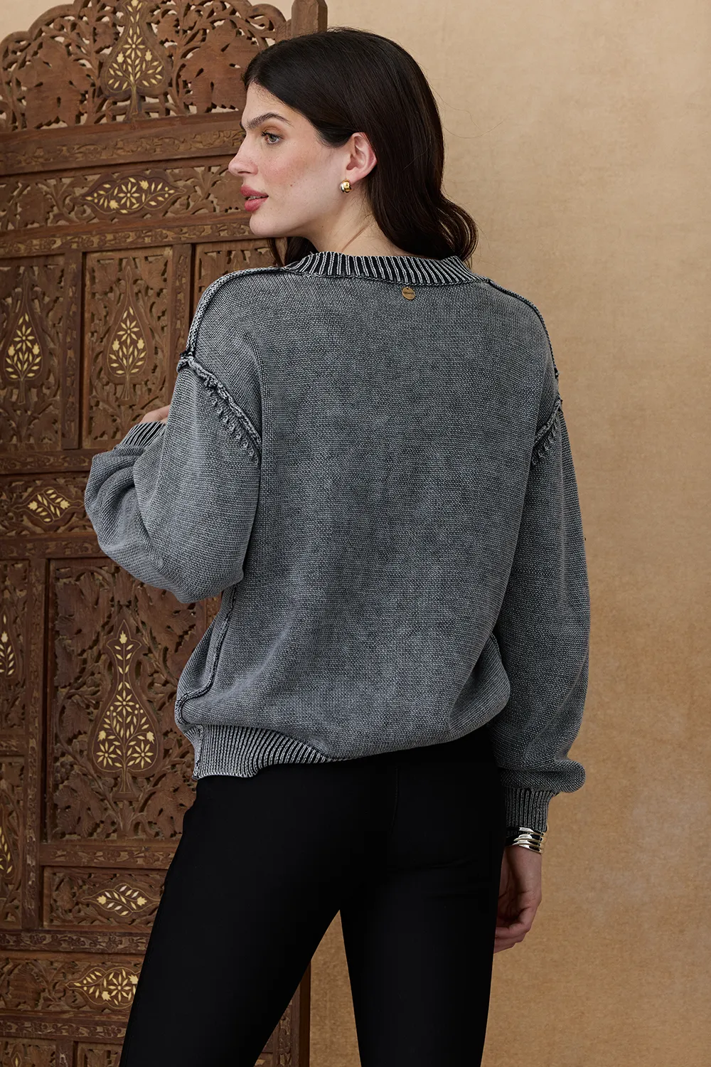 El Saco Kokum es un saco tejido con escote en V y efecto stonewash