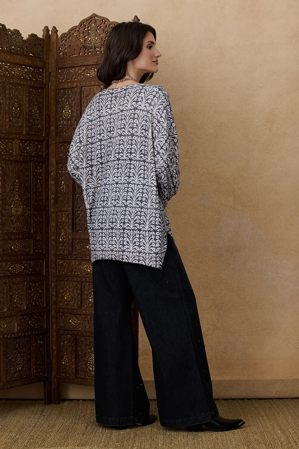 El Sweater Sumac presenta un diseño estampado con escote redondo.